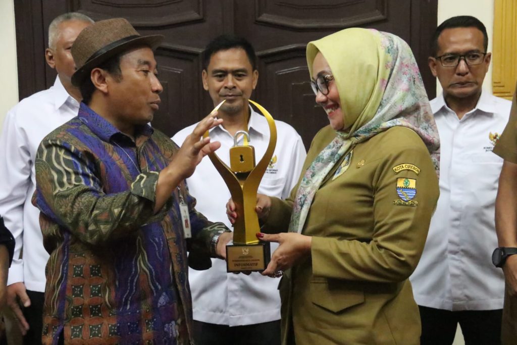 Penghargaan diterima Wakil Wali Kota Cirebon, Dra. Hj. Eti Herawati. Penyerahannya disaksikan Sekretaris Daerah (Sekda), Drs. Agus Mulyadi, M.Si., Kepala Dinas Komunikasi, Informatika dan Statistik (DKIS) Ma’ruf Nuryasa, A.P., M.M., dan jajaran komisioner KI Kota Cirebon.
