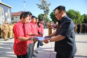Pada kesempatan yang sama, Sekda juga melepas atlet pencak silat Macan Ali untuk bertanding ke kejuaraan internasional di Singapura. “Pagi ini apel yang istimewa. Karena itu, mohon paling tidak dukungan doa dari kita semuanya,” ungkap Anwar.