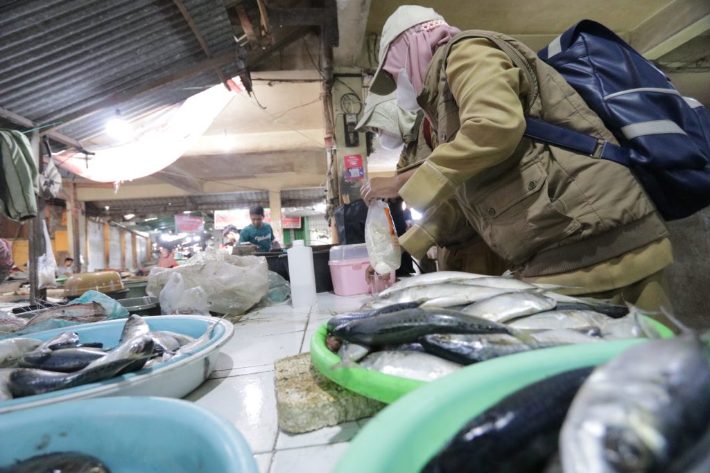 Ada dua bahan pangan yang diperiksa, yang pertama bahan pangan hewani yang meliputi daging sapi, daging ayam dan ikan. Ketiga jenis itu diperiksa menggunakan teknik rapid test dan hasilnya bebas dari formalin dan bahan kimia berbahaya.