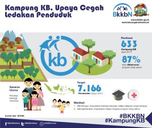 Sejak dicanangkan oleh Presiden Joko Widodo pada tanggal 14 Januari 2016, Kampung KB terus tumbuh pesat. Semangat membentuk dan mendirikan Kampung KB di seluruh Nusantara telah menghasilkan ratusan Kampung KB. Targetnya pada tahun 2017 ini terdapat satu Kampung KB di setiap satu kecamatan di seluruh Indonesia. Artinya, sepanjang tahun 2017 ini bakal ada sekitar 7166 Kampung KB di seluruh Indonesia. Hingga April 2017, Kampung KB yang sudah terbentuk baru 633. Masih ada sekitar 9 bulan lagi untuk mengejar sekitar 6000 Kampung KB.Kampung KB merupakan salah satu “senjata pamungkas” baru pemerintah dalam mengatasi masalah kependudukan, terutama di wilayah-wilayah yang jarang “terlihat” oleh pandangan pemerintah.Kampung KB, kedepannya akan menjadi ikon program kependudukan, KB dan Pembangunan Keluarga (KKBPK). Kehadiran Kampung KB bertujuan meningkatkan kualitas hidup masyarakat di tingkat kampung atau yang setara melalui program KKBPK serta pembangunan sektor lain dalam rangka mewujudkan keluarga kecil berkualitas.