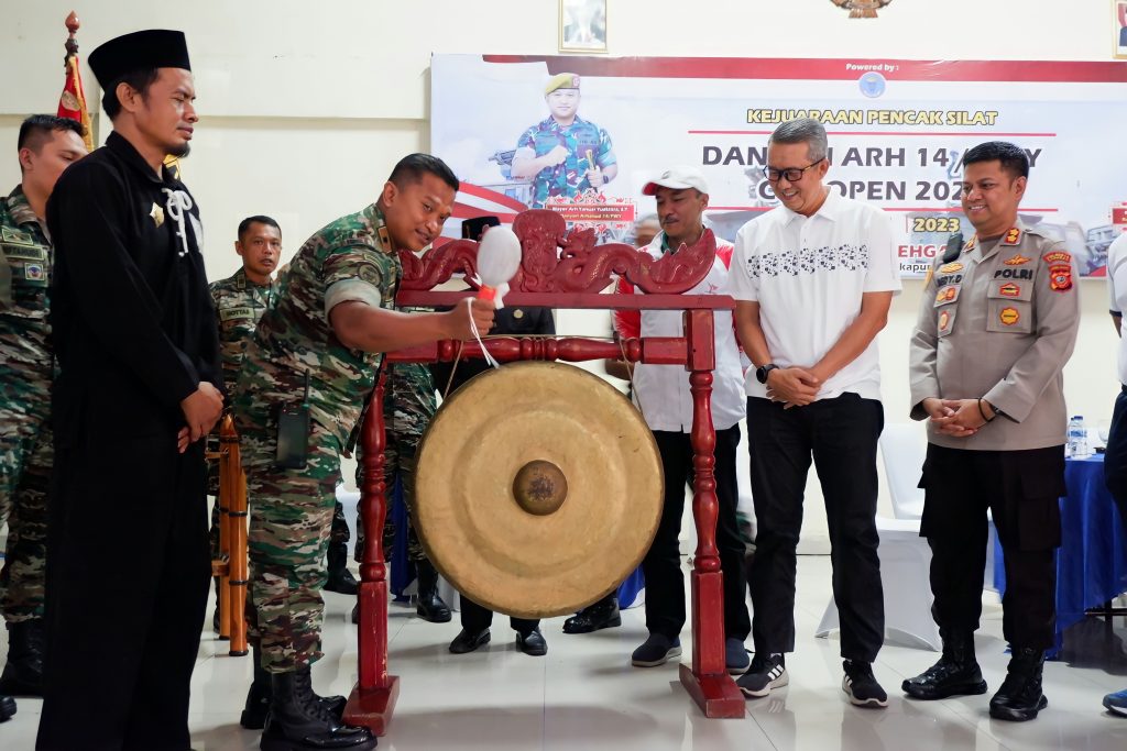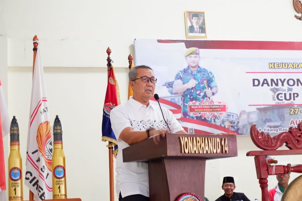 Sekretaris Daerah (Sekda) Kota Cirebon, Drs. H. Agus Mulyadi, M.Si., saat menghadiri Kejuaraan Pencak Silat Danyonarhanud Cup Open 2023 di aula Cangehgar Yon Arhanud 14/PWY menyambut baik dan sangat mengapresiasi kejuaraan pencak silat.
