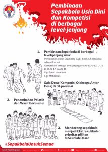 Sementara yang kedua, adalah memaksimalkan kegiatan kurikulum ekstrakulikuler olahraga di sekolah, khususnya terkait sepakbola dan memaksimalkan kompetisi olahraga sepakbola di berbagai level dan jenjang usia.