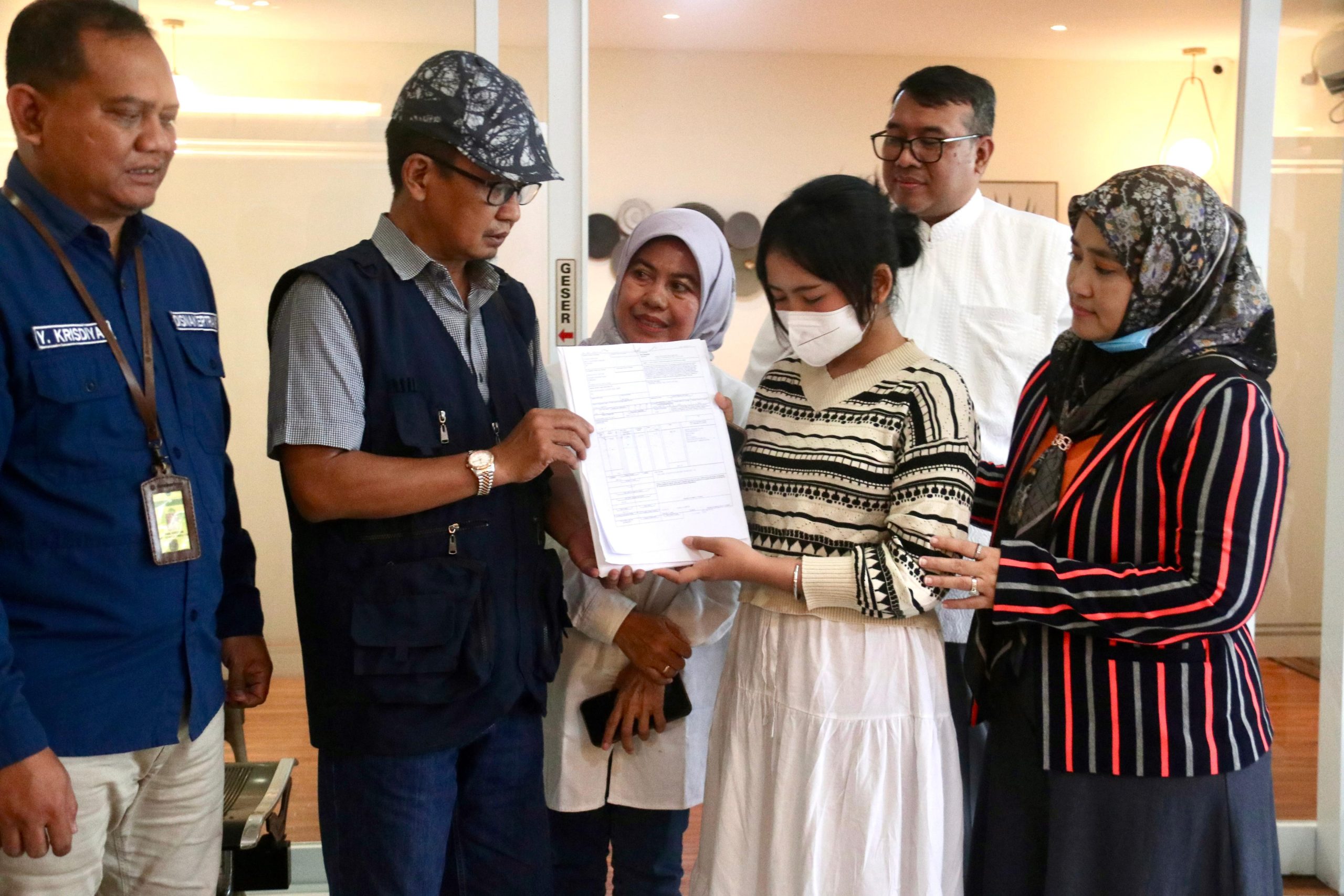 Penyerahan dokumen kematian dilakukan secara resmi oleh Kepala Unit Layanan Terpadu Satu Atap (LTSA) PMI Dinas Tenaga Kerja dan Transmigrasi Provinsi Jawa Barat kepada Pemerintah Daerah Kota Cirebon, yang diwakili oleh Dinas Tenaga Kerja. Selanjutnya, dokumen tersebut diserahkan kepada putri almarhumah, Nesya Puji Lestari, di tengah suasana haru dan penuh penghormatan.