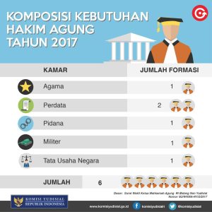 Berdasarkan surat Wakil Ketua MA RI Bidang Non Yudisial Nomor 02/WKMA-NY/2/2017 tentang tambahan hakim agung Tahun 2017, MA membutuhkan enam hakim agung untuk mengisi kamar pidana (1 orang), kamar perdata (2 orang), kamar agama (1 orang), kamar militer (1 orang), dan tata usaha negara (1 orang, yang memiliki keahlian hukum perpajakan).