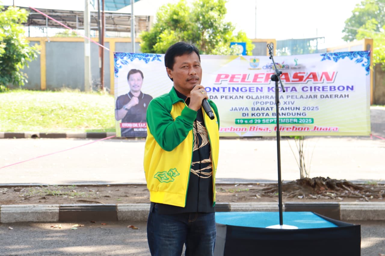 CIREBON – Wali Kota Cirebon, Effendi Edo melepas Kontingen Kota Cirebon yang akan berlaga pada Pekan Olahraga Pelajar Daerah (POPDA) ke-14 Jawa Barat Tahun 2025, Sabtu (13/9/2025). Ajang ini akan berlangsung pada 17 hingga 29 September di Kota Bandung dan Kabupaten Karawang.