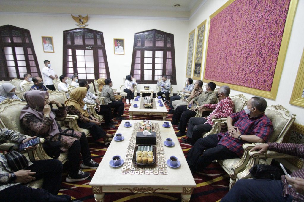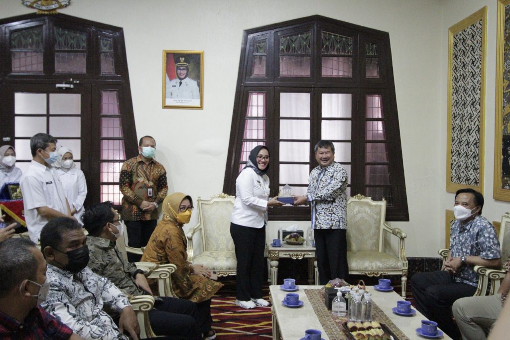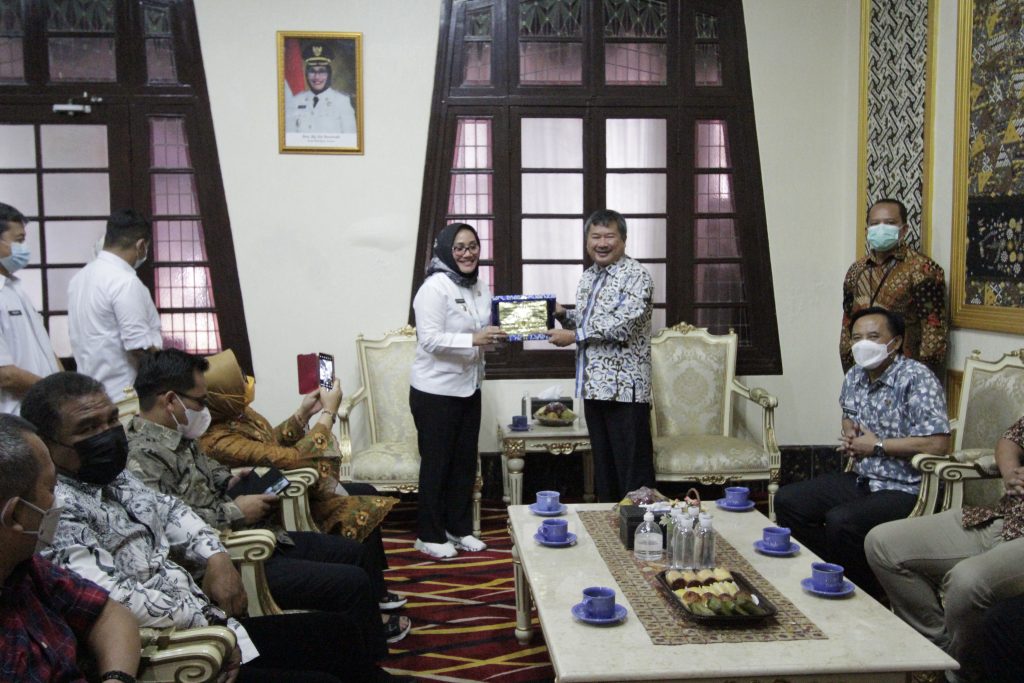 CIREBON – Wakil Wali Kota Cirebon, Dra. Hj. Eti Herawati menerima kunjungan kerja Bupati Garut H. Rudy Gunawan, S.H., M.H., MP., beserta rombongan, di Ruang Kanigaran Balai Kota Cirebon, Rabu (11/5/2022).