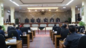 Rapat paripurna dilakukan terkait Penyampaian Nota Pengantar dan pandangan umum fraksi-fraksi DPRD pada Raperda 2020.
