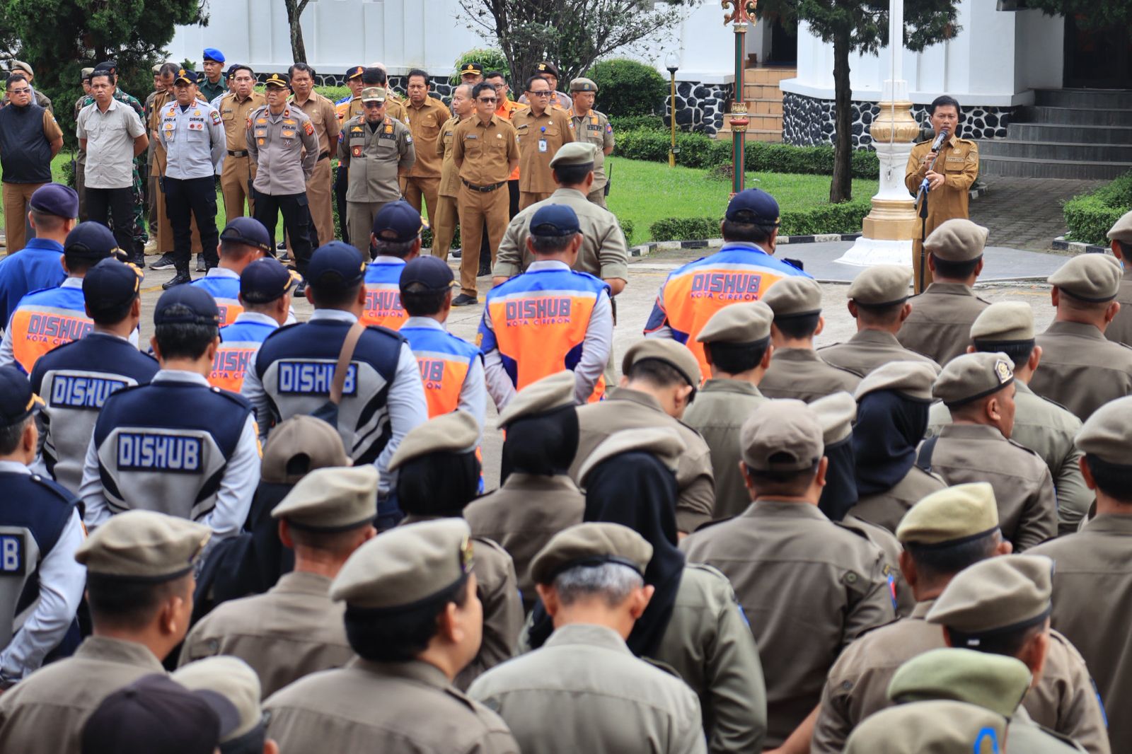 Wali Kota Cirebon, Effendi Edo, memimpin apel pagi di halaman Balai Kota Cirebon yang dilanjutkan dengan kegiatan penertiban PKL di bantaran Sungai Sukalila, Senin (15/12/2025). Penertiban berjalan tertib dan kondusif. Kondisi ini tidak terlepas dari pendekatan persuasif yang dilakukan pemerintah melalui sosialisasi dan imbauan secara bertahap.