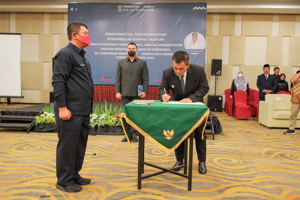 CIREBON – Sebanyak 127 pejabat di lingkup Pemerintah Daerah (Pemda) Kota Cirebon dilantik dan diambil sumpah jabatan, Jumat (7/10/2022) di Swiss-Belhotel Cirebon.