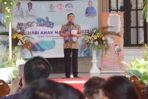 Dalam sambutannya, Azis menyampaikan bahwa momentum Peringatan Hari Anak Nasional tahun 2022 ini bertema “Anak Terlindungi, Indonesia Maju”. Semangat ini mendorong semua elemen untuk bisa mendukung melalui kerja-kerja aktif dan inovatif yang berimplikasi pada tumbuh kembang anak.