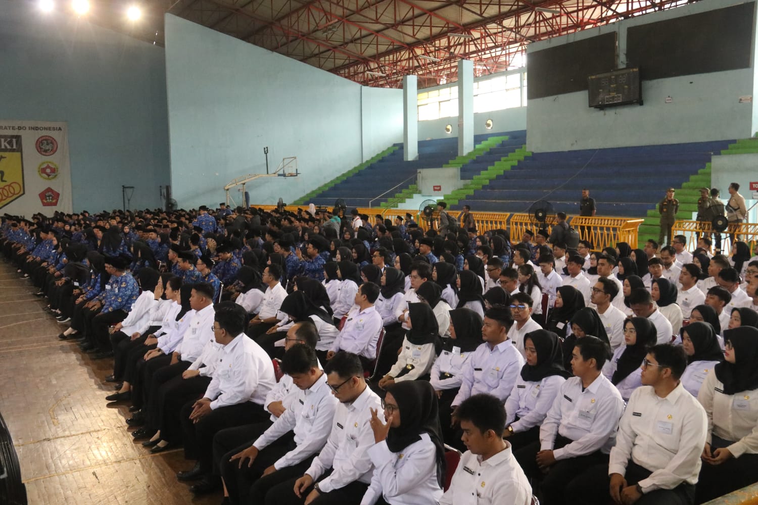 Cirebon – Pemerintah Daerah Kota Cirebon melalui Badan Kepegawaian dan Pengembangan Sumber Daya Manusia (BKPSDM) Kota Cirebon menggelar Pengambilan Sumpah/Janji dan Penyerahan Surat Keputusan (SK) Pengangkatan Pegawai Pemerintah dengan Perjanjian Kerja (PPPK) dan Calon Pegawai Negeri Sipil (CPNS) formasi tahun 2024, yang berlangsung di Sport Hall Bima, Selasa (15/4).