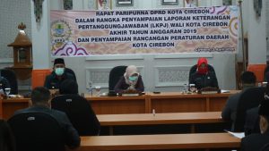 “Pada kesempatan ini, kami menyampaikan dua Raperda,” ungkap Wali Kota Cirebon, Drs. H. Nashrudin Azis, SH., pada Rapat Paripurna DPRD Kota Cirebon, Jumat, 03 April 2020. Rapat paripurna tersebut dilakukan dalam rangka Penyampaian LKPJ dan Raperda, Pemandangan Umum Fraksi-Fraksi DPRD, Jawaban Wali Kota Cirebon Atas Pemandangan Umum Fraksi serta Pengumuman Pembentukan Pansus DPRD Kota Cirebon.