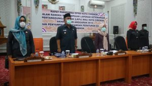 CIREBON-Pemerintah Daerah (Pemda) Kota Cirebon menyampaikan dua Rancangan Peraturan Daerah (Raperda) pada rapat paripurnda bersama dengan DPRD Kota Cirebon. Rapat paripurna diselenggarakan mengikuti prosedur tetap pencegahan penyebaran covid-19.