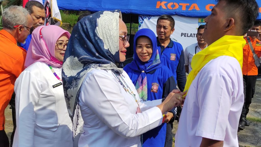 CIREBON – Wakil Wali Kota Cirebon, Dra. Hj. Eti Herawati membuka Pelatihan Taruna Siaga Bencana (Tagana) di komplek kolam renang Catherine Surya, Rabu (22/6/2022). Calon Tagana diharapkan menjadi garda terdepan dalam penanganan kebencanaan.