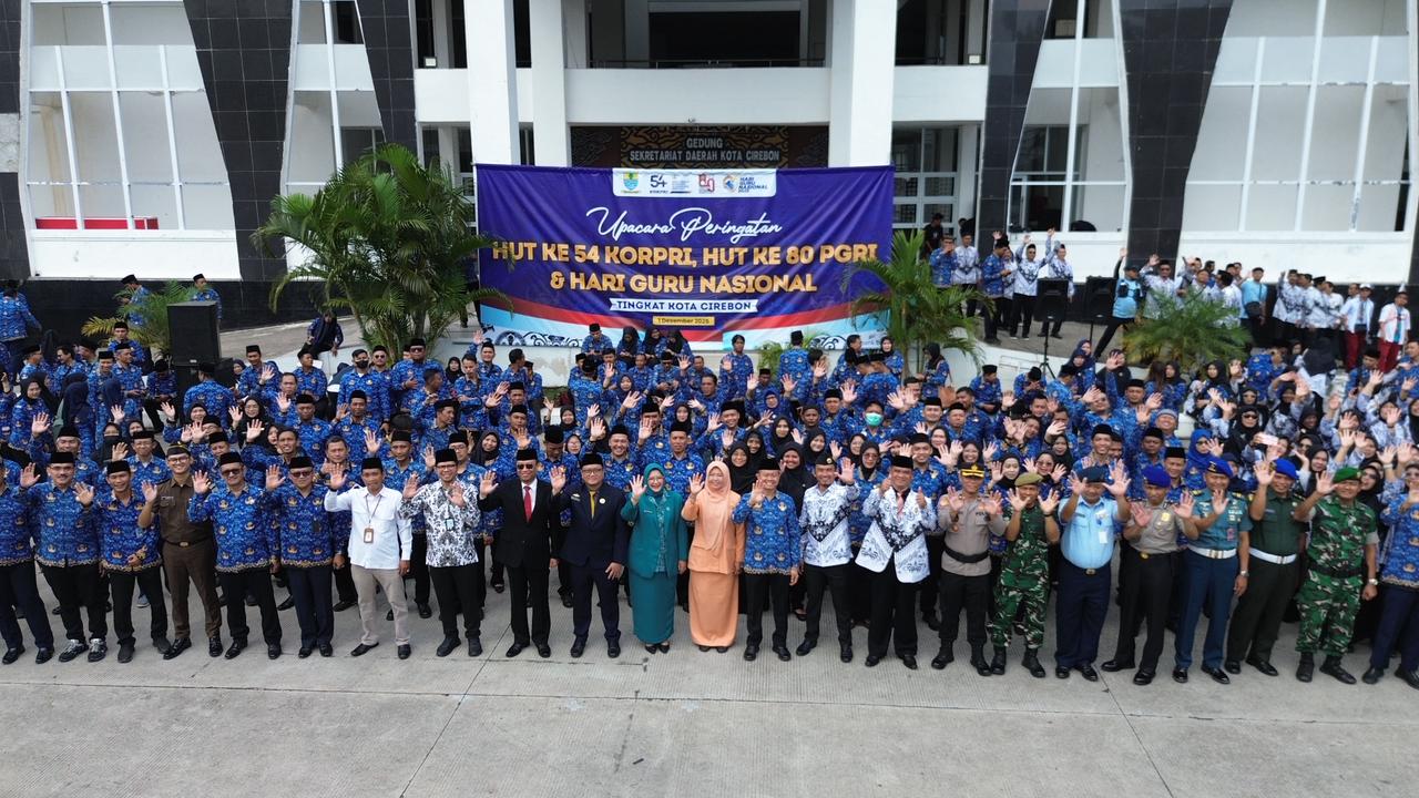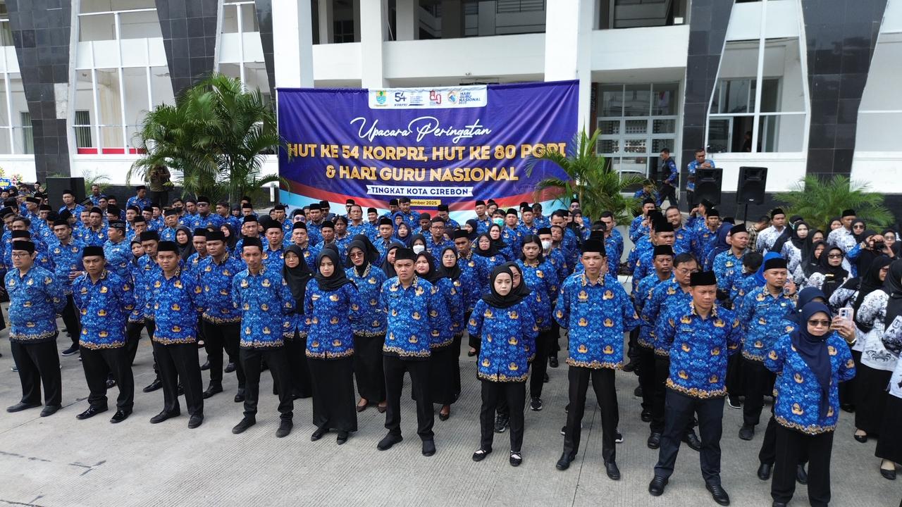 Cirebon – Upacara peringatan Hari Ulang Tahun ke-54 KORPRI, Hari Ulang Tahun ke-80 PGRI, dan Hari Guru Nasional tingkat Kota Cirebon yang digelar di halaman Balai Kota pada Senin (1/12/2025) berlangsung khidmat. Acara ini tidak hanya menjadi seremoni tahunan, tetapi juga momentum perenungan bersama tentang arah pengabdian, pelayanan, dan masa depan pendidikan di Kota Cirebon.