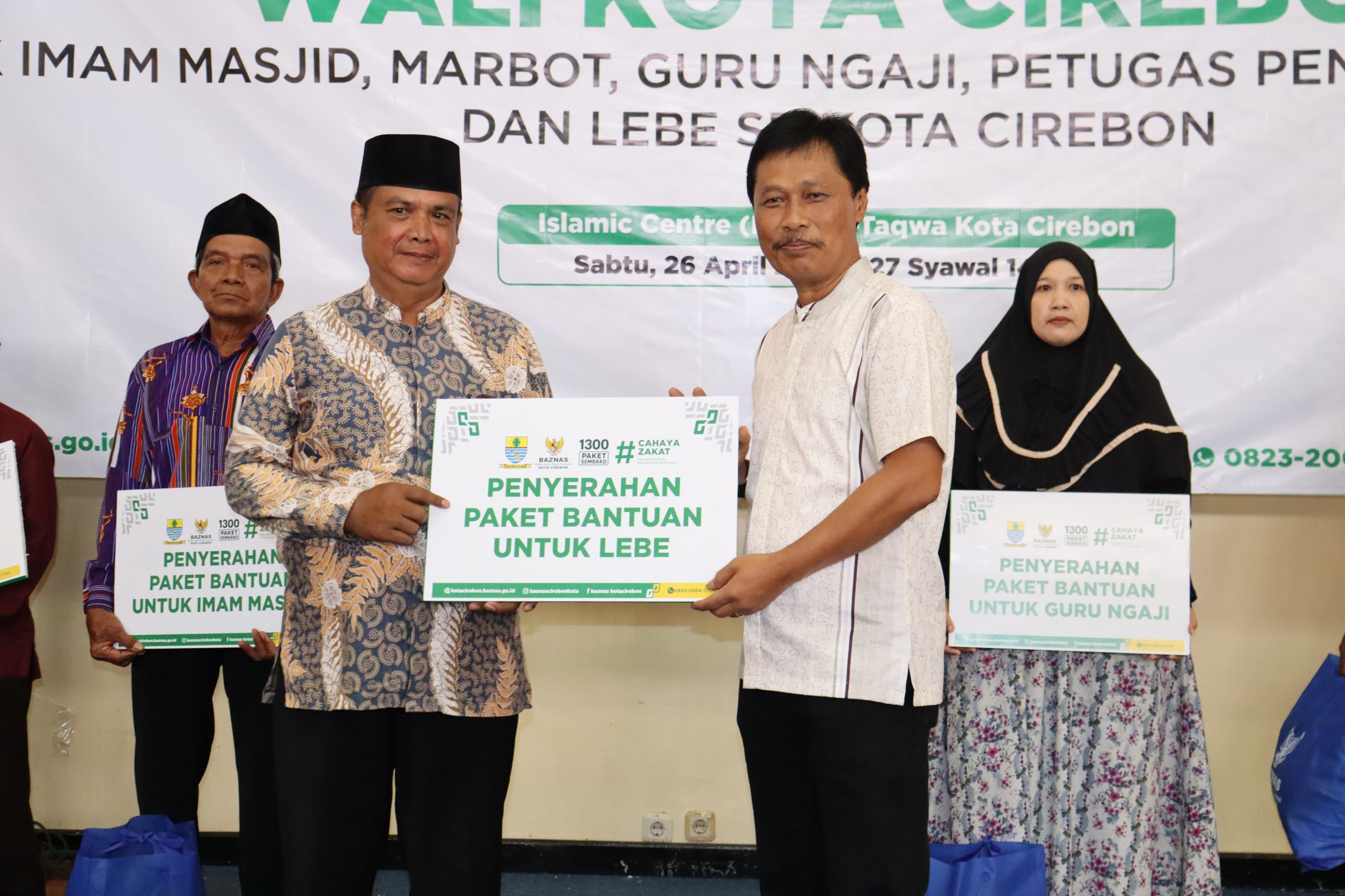 Cirebon – Pemerintah Kota Cirebon bekerja sama dengan Baznas Kota Cirebon menyerahkan 1.300 paket bantuan kepada para imam masjid, marbot, guru ngaji, lebe, serta petugas pengangkut sampah. Kegiatan ini dihadiri oleh Wali Kota Cirebon, Effendi Edo di Islamic Centre At-Taqwa Cirebon, Sabtu (26/4/2025).