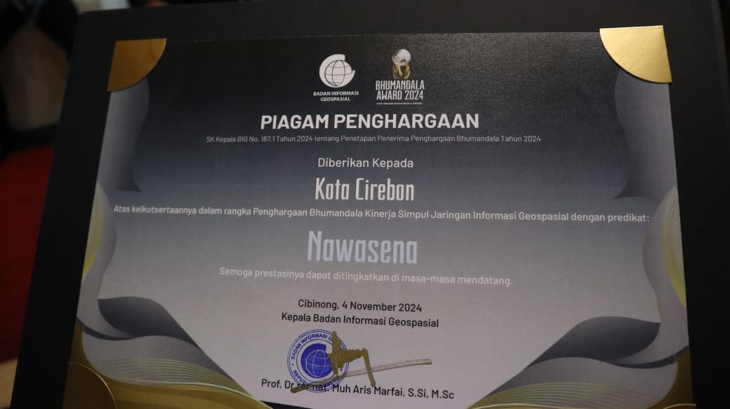 “Penghargaan ini akan kami jadikan sebagai motivasi untuk terus berkembang. Kami berkomitmen untuk terus memperbaiki sistem informasi geospasial agar dapat memberikan manfaat maksimal bagi masyarakat Kota Cirebon,” tegasnya.