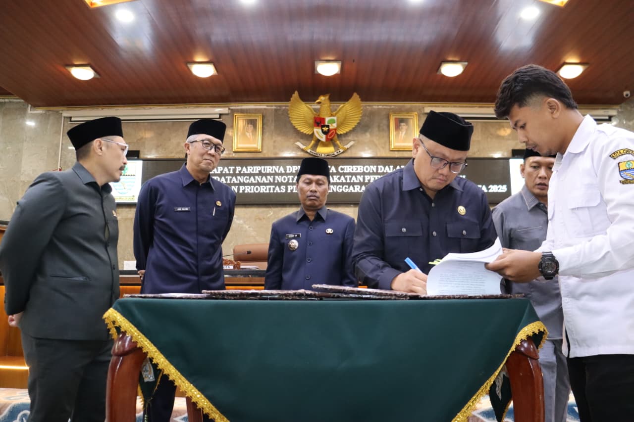 Cirebon – Pemerintah Kota Cirebon bersama Dewan Perwakilan Rakyat Daerah (DPRD) Kota Cirebon secara resmi menyepakati Nota Kesepakatan Perubahan Kebijakan Umum APBD (KUA) dan Perubahan Prioritas dan Plafon Anggaran Sementara (PPAS) Tahun Anggaran 2025, Senin (8/9/2025). Kesepakatan tersebut ditandatangani dalam Rapat Paripurna DPRD Kota Cirebon dan dihadiri langsung oleh Wali Kota Cirebon, Effendi Edo, didampingi Sekretaris Daerah, Agus Mulyadi dan kepala perangkat daerah.
