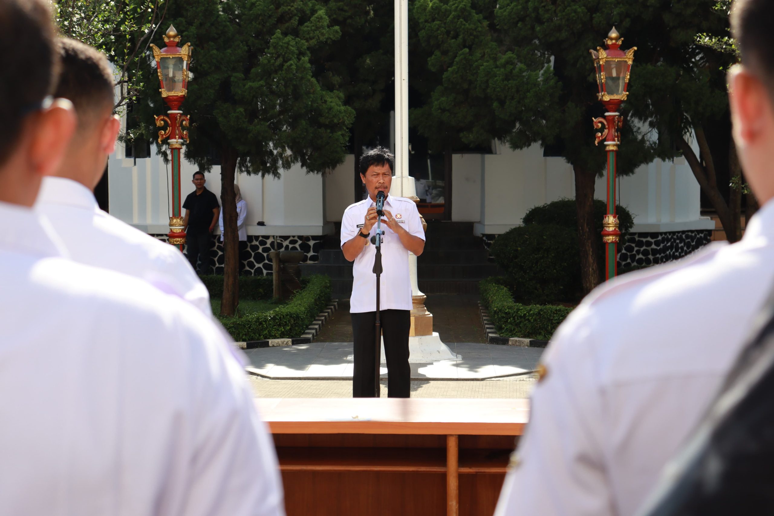 Cirebon — Wali Kota Cirebon, Effendi Edo memimpin apel pagi dalam rangka penandatanganan Pakta Integritas dan Perjanjian Kinerja di halaman Balai Kota, Rabu (30/4/2025).