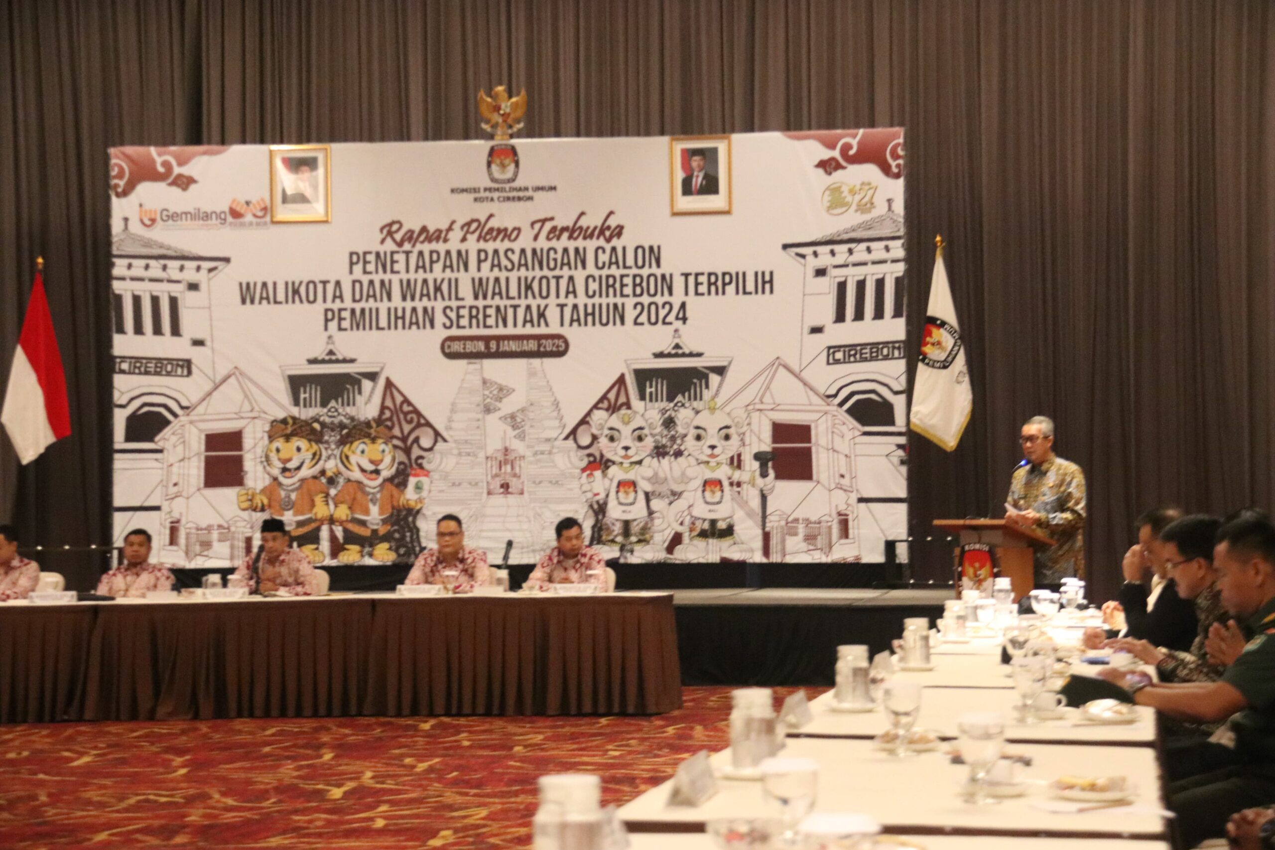 Cirebon – Penjabat (Pj) Wali Kota Cirebon, Drs H Agus Mulyadi MSi menghadiri Rapat Pleno Penetapan Pasangan Calon Wali Kota dan Wakil Wali Kota Cirebon Terpilih Tahun 2024 di Hotel Luxton, Kamis (9/1/2025).