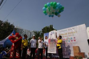 CIREBON- Penjabat Walikota, Dr. DediTaufik, M.Si bersama masyarakat Kota Cirebon melaksanakan Senam sehat kolosal 18.08.18 dalam rangka menyambut Asean Games XVIII dan HUT ke 50 BPJS kesehatan serta gerakan Masyarakat hidup sehat menjadi tema pada senam massal yang diselenggarakan di Area Car Free day Jl.Siliwangi Kota Cirebon, Minggu (29/7).