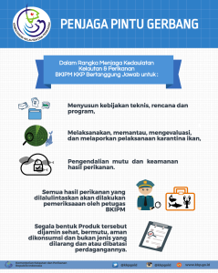 Jajaran BKIPM menunjukan bukti nyata terhadap komitmen menjaga kedaulatan di entry – exit point Indonesia, termasuk di Pos Lintas Batas Negara (PLBN) dan daerah perbatasan seperti di Nanga Badau, Skouw, Atambua, Motaain, Motamasin, Wini, Nunukan, Sebatik, Sota dan daerah lainya. BKIPM menjamin lalu lintas hasil perikanan bebas hama penyakit ikan berbahaya, bermutu dan aman untuk dikonsumsi serta pengawasan jenis-jenis ikan yang dilarang dan atau dibatasi perdagangannya. Mereka memegang teguh komitmen ini sebagai bentuk pengabdian menjaga kedaulatan di pintu gerbang. *Biro Kerjasama dan Hubungan Masyarakat KKP dan Tim Komunikasi Pemerintah Kemkominfo.