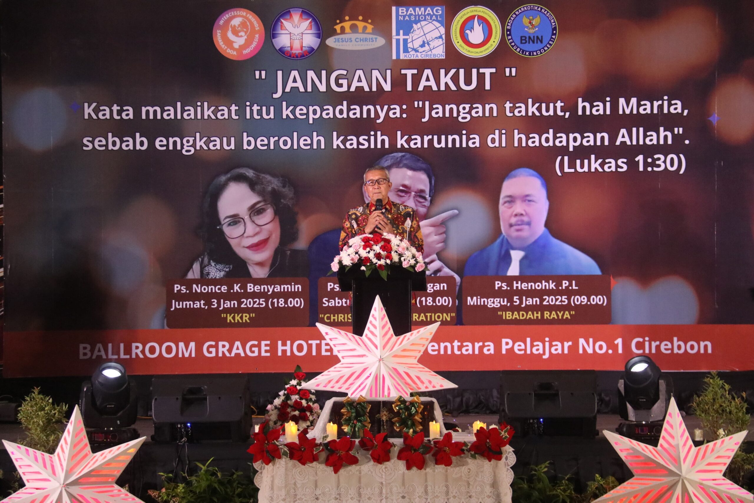 Cirebon – Pj Wali Kota Cirebon, Drs H Agus Mulyadi MSi, hadir dalam acara Christmas Celebration (Perayaan Natal) dan Doa Bersama yang diselenggarakan oleh Komunitas “Sahabat Doa Indonesia” di bawah naungan Sinode Gereja Kristen Pimpinan Rohkudus (GKPR) di Grage Hotel. Acara ini menjadi momen berharga untuk mempererat tali kasih di antara warga Kota Cirebon, serta memperkuat semangat kebersamaan di tengah keragaman.
