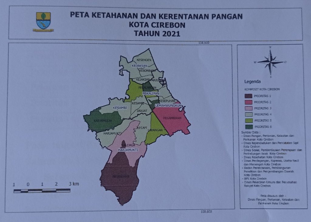 CIREBON – Pemda Kota Cirebon melalui Dinas Ketahanan Pangan, Pertanian dan Perikanan (DKPPP) Kota Cirebon melakukan pemetaan wilayah rentan pangan, Selasa (25/1/2022).