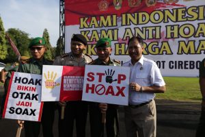 CIREBON- Deklarasi dan ikrar anti hoax dilakukan bersama kepolisian, TNI dan Pemerintah Daerah Kota Cirebon. Pjs Wali Kota Cirebon meminta agar setiap orang bijak menggunakan media sosial (medsos).