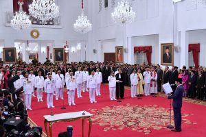 Setibanya di Istana Negara, mereka diambil sumpah oleh Presiden dan dilantik dengan berdasarkan pada Surat Keputusan Presiden Republik Indonesia Nomor 152/P Tahun 2018 hingga Nomor 154/P Tahun 2018, Nomor 156/P tahun 2018, serta Nomor 158/P Tahun 2018 hingga Nomor 162/P Tahun 2018.