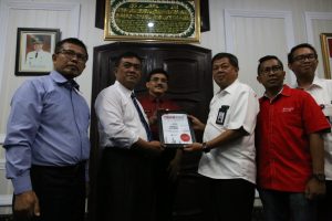 CIREBON- Perusahaan Provider Telekomunikasi Indonesia cabang Jabar Timur, Jumat (10/ 11) melakukan kunjungannya ke Pemerintah Daerah Kota Cirebon sekaligus memberikan penghargaan kepada Pemerintah Daerah Kota Cirebon atas sinergitas stakeholders dalam pelaksanaan program smart city di Kota Cirebon. Kunjungannya tersebut pun disambut secara hangat oleh Wali Kota Cirebon, Drs. Nasrudin Azis, SH yang didampingi langsung oleh Kepala Dinas Komunikasi Informatika dan Statistik Kota Cirebon, Iing Daiman, S.Ip di ruang Kerja Wali Kota Cirebon.