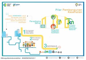 Pada intinya, pembangunan kesehatan yang semula bersifat kuratif dan rehabilitatif kini lebih diarahkan pada upaya kesehatan yang bersifat promotif dan preventif. Untuk itu, diperlukan upaya penguatan tiga pilar pembangunan kesehatan yaitu: Paradigma Sehat, Penguatan Pelayanan Kesehatan dan Jaminan Kesehatan Nasional. Utamanya pada pilar pertama paradigma sehat diimplementasikan melalui dua pendekatan, yaitu: 1) Pendekatan Keluarga dimana aktivitas kegiatannya sepenuhnya dilakukan oleh jajaran kesehatan khususnya ditingkat Puskesmas dan 2) Gerakan Masyarakat Hidup Sehat (GERMAS) yang mana kegiatannya tidak hanya dilakukan oleh jajaran kesehatan saja, namun juga lintas sektor.