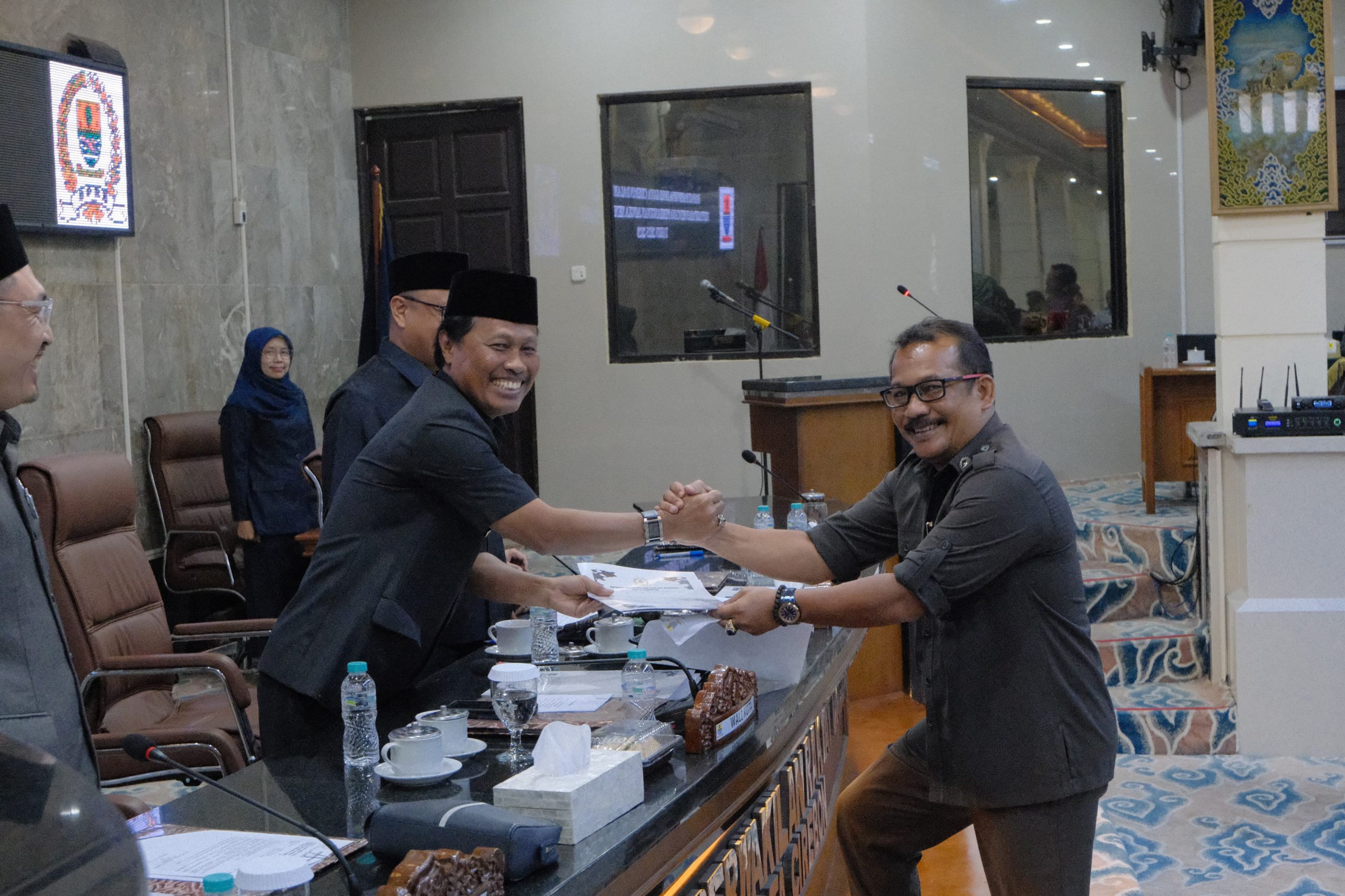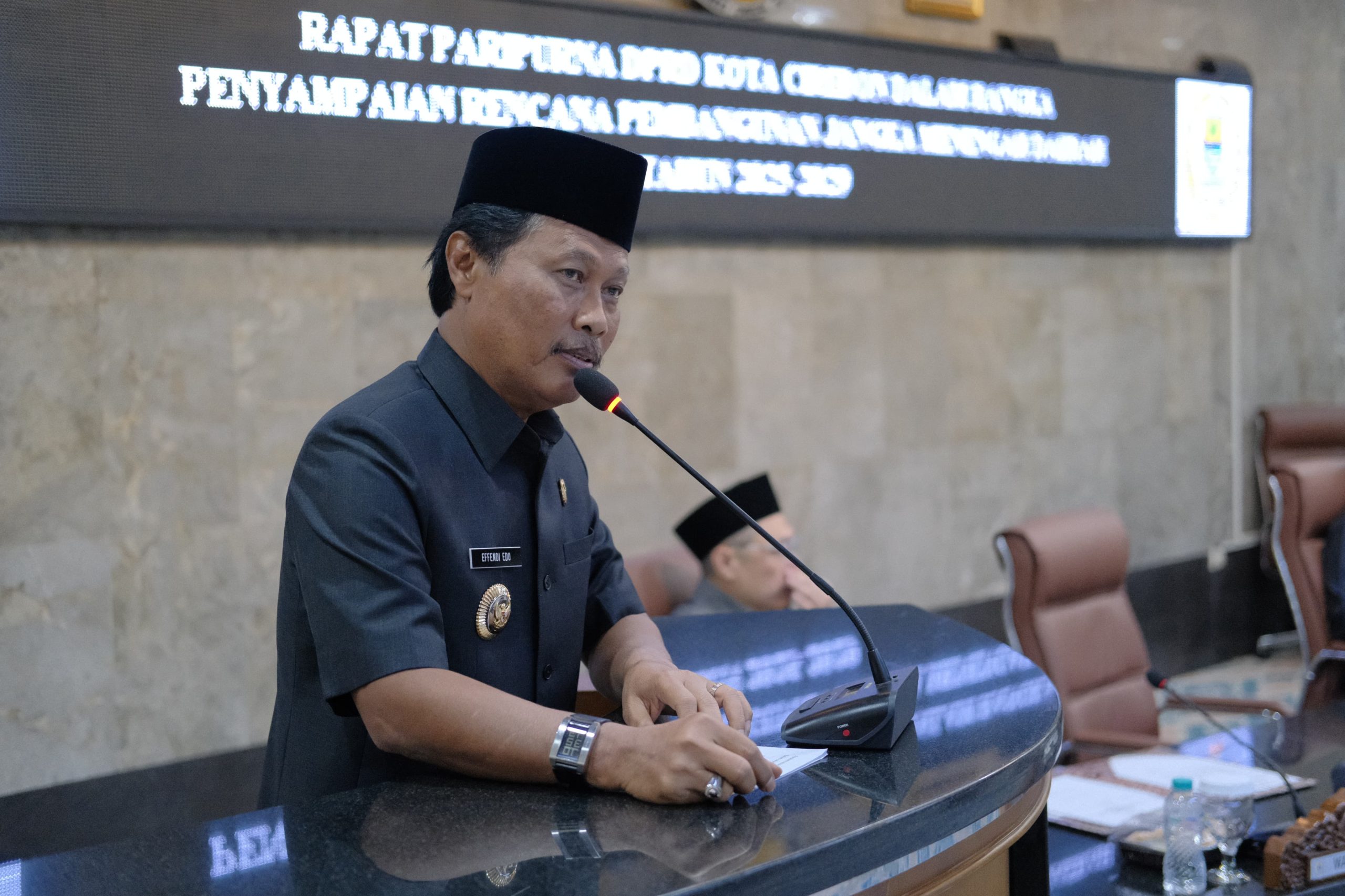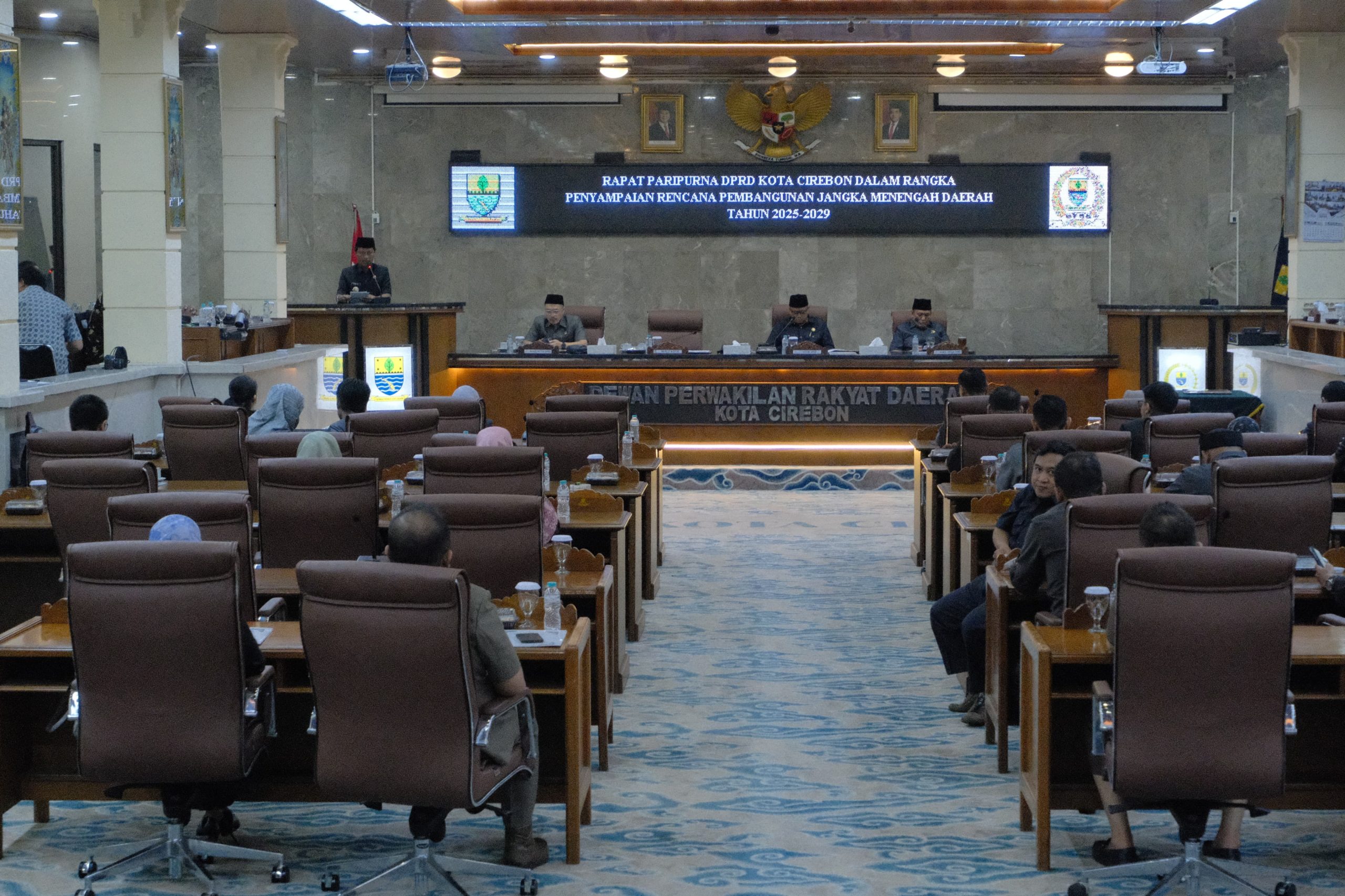 Cirebon – Wali Kota Cirebon, Effendi Edo, didampingi oleh Sekretaris Daerah Kota Cirebon, Agus Mulyadi, menghadiri Rapat Paripurna DPRD Kota Cirebon dengan agenda penyampaian Rancangan Peraturan Daerah (Raperda) tentang Rencana Pembangunan Jangka Menengah Daerah (RPJMD) Kota Cirebon Tahun 2025-2029, Kamis (24/7).
