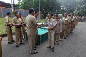 CIREBON – Pemerintah Daerah Kota Cirebon, Senin (3/4) menyerahkan SK kenaikan pangkat kepada para pegawai negeri sipil sebanyak 622 orang yang dilaksanakan bersamaan dengan kegiatan apel bersama di komplek perkantoran Bima Kota Cirebon.