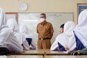 Sekretaris Daerah (Sekda) Kota Cirebon, Drs. H. Agus Mulyadi, M.Si., di sela-sela melakukan peninjauan dan monitoring Simulasi Pembelajaran Tatap Muka Terbatas (PTMT) 100 persen, Selasa (11/1/2022).