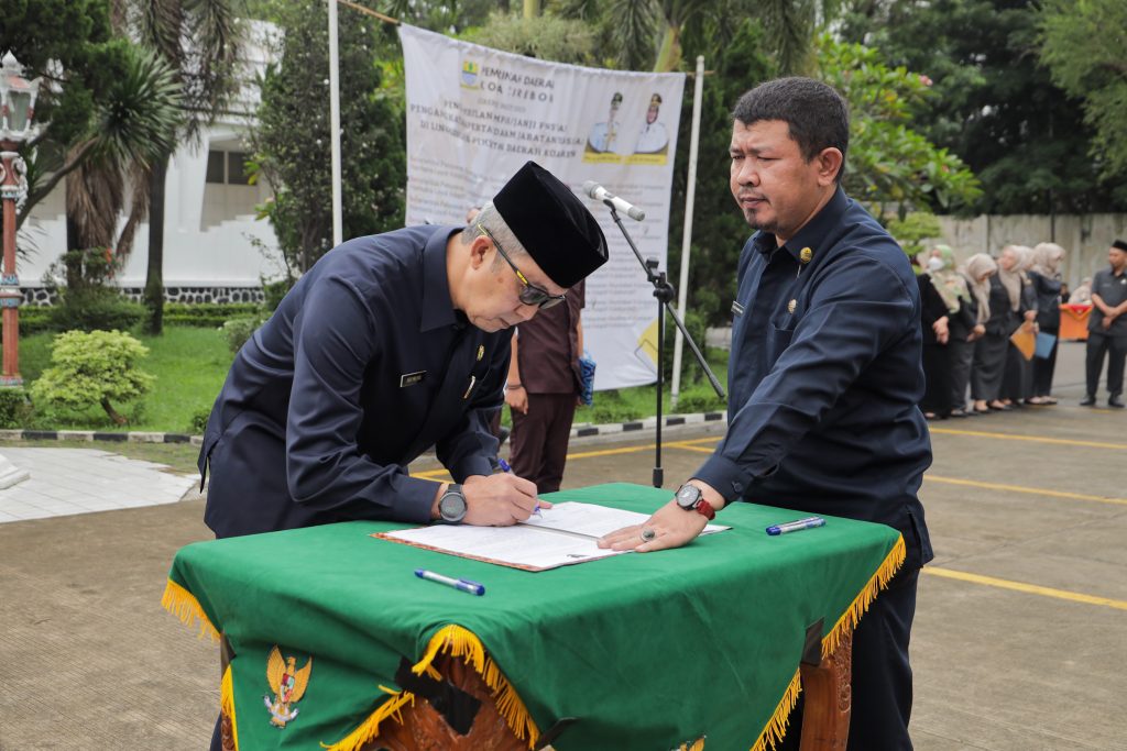 Hal tersebut diungkapkan Sekda Kota Cirebon, Drs. H. Agus Mulyadi, M.Si., usai memimpin pengambilan sumpah/janji PNS dan pengangkatan pertama dalam jabatan fungsional di lingkungan Pemda Kota Cirebon, Kamis (2/3/2023). “Saya berpesan untuk tidak berpuas diri dengan apa yang sudah dicapai hari ini,” kata Agus.