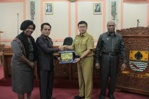 Cirebon – Sekretaris Daerah Kota Cirebon, Drs. Asep Dedi, M.Si berserta SKPD di Lingkungan Pemerintah Daerah Kota Cirebon, Selasa (9/5) menerima kunjungan kerja anggota Dewan Perwakilan Rakyat Daerah (DPRD) Kabupaten Sarmi Papua Barat di Ruang Adipura Kencana Balai Kota Cirebon.