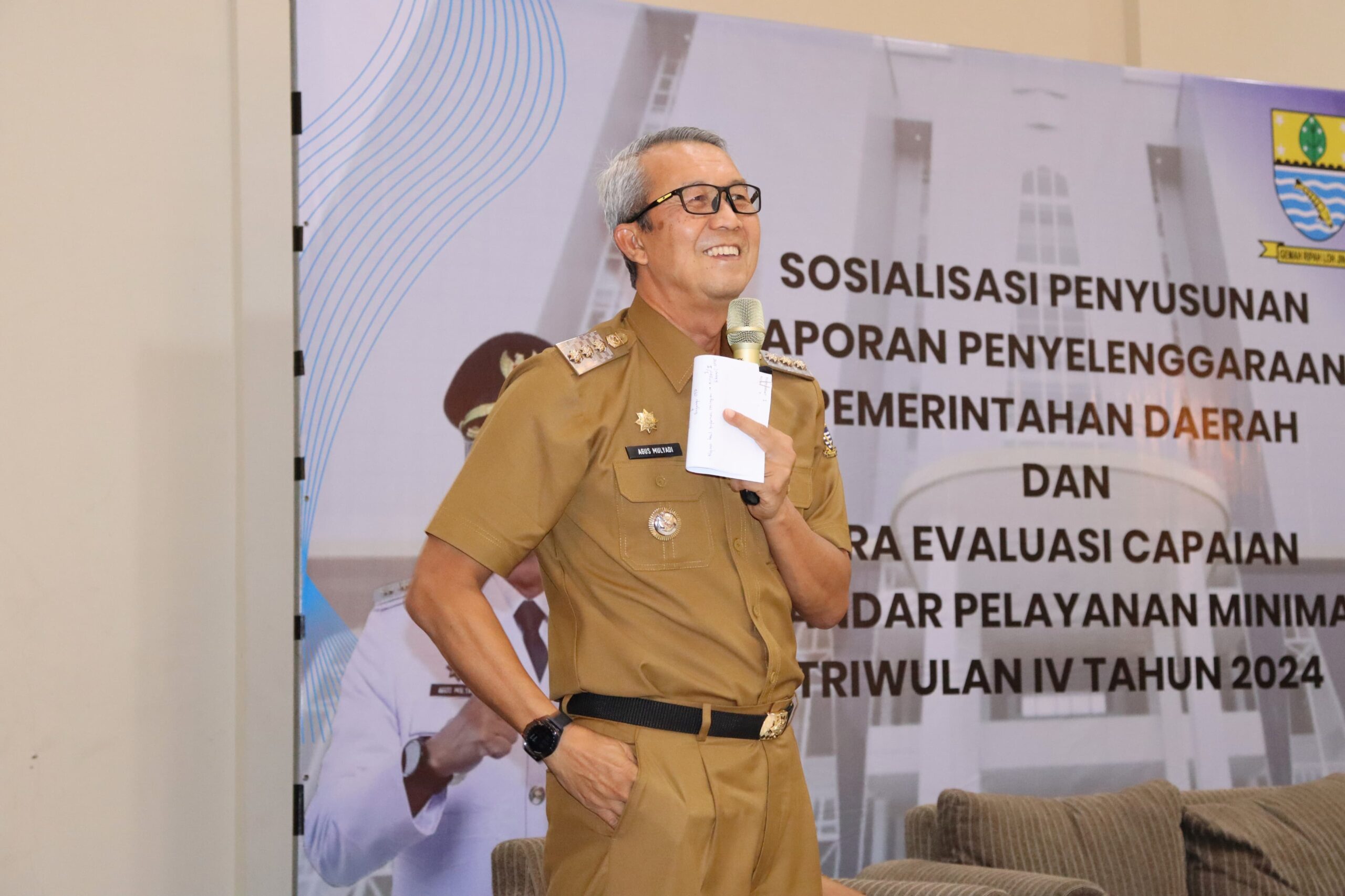 Cirebon – Pj Wali Kota Cirebon, Drs H Agus Mulyadi MSi didampingi Asisten Pemerintahan dan Kesejahteraan Masyarakat (Aspemkesra), Drs Sutikno SAp MSi hadir Sosialisasi Laporan Penyelenggaraan Pemerintahan Daerah Tahun 2024, Senin (23/12/2024). Kegiatan ini dihadiri sejumlah kepala perangkat daerah dengan tujuan untuk memberikan pemahaman terkait pelaporan kinerja pemerintahan.