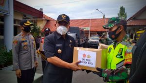CIREBON- Sebanyak 1000 paket sembako dari TNI dan Polri diberikan kepada masyarakat Kota Cirebon. Pembagian sembako tersebut menunjukkan 3 pilar pemerintahan, TNI, dan Polri saling mengisi.