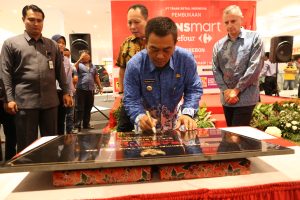 CIREBON-Diresmikannya pusat perbelanjaan di kawasan Dr. Cipto, Transmart Carrefour oleh Wali Kota Cirebon, Drs. Nasrudin Azis, SH diungkapkan oleh adanya pusat perbelanjaan yang baru ini, bisa menjadi ekonomi di Kota Cirebon semakin meningkat, Jumat (15/12).