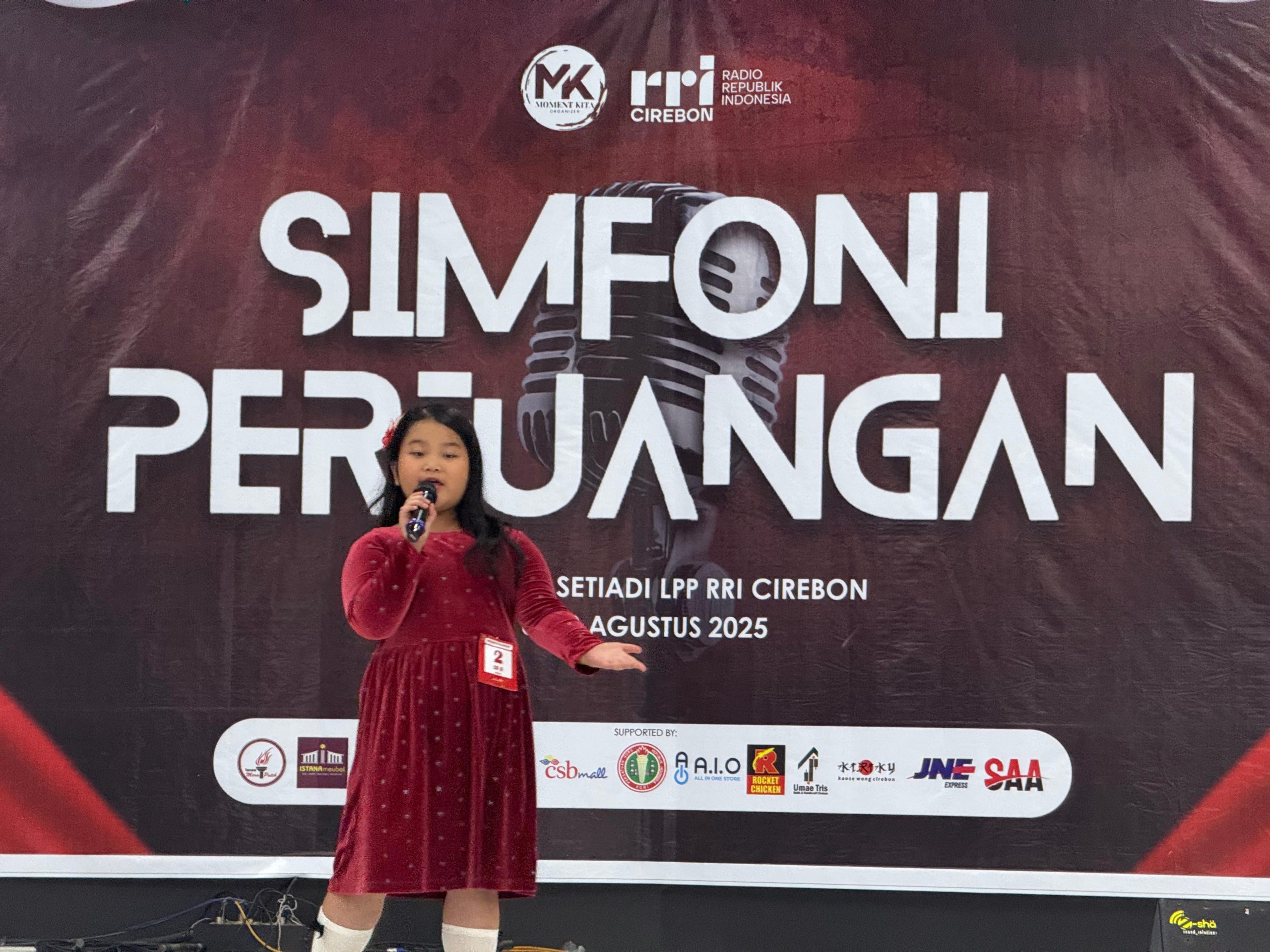 Cirebon — Wakil Wali Kota Cirebon, Siti Farida Rosmawati, menghadiri kegiatan lomba menyanyi lagu perjuangan bertajuk “Simfoni Perjuangan” dalam rangkaian menyambut HUT ke 80 RI, di RRI Cirebon, Jumat (8/8/2025). Kegiatan ini bukan sekadar panggung unjuk kebolehan vokal, melainkan menjadi ruang batin untuk menyulam kembali ingatan akan perjuangan dan pengorbanan para pahlawan bangsa.