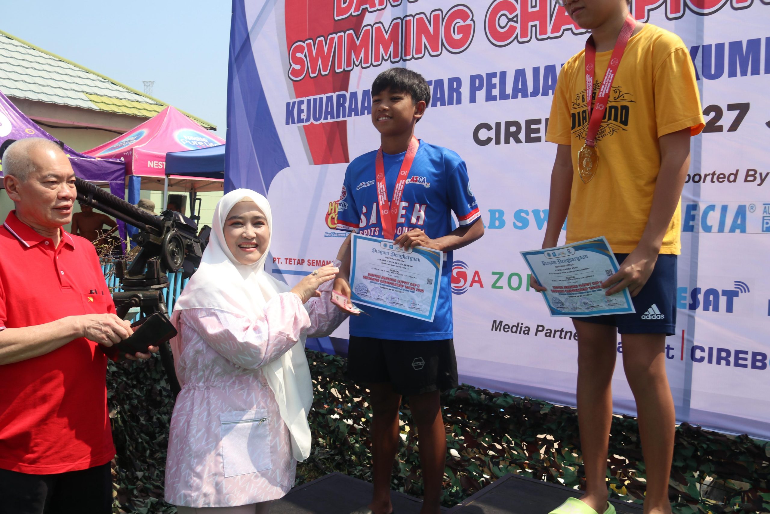 Cirebon — Wakil Wali Kota Cirebon, Siti Farida Rosmawati, menghadiri kegiatan Kejuaraan Renang Danyon Arhanud 14/PWY Cup II Champion Tahun 2025 di Kolam Renang Tirta Wira Yudha, Sabtu (26/7/2025). Kejuaraan ini juga dirangkaikan dengan peringatan Hari Ulang Tahun ke-59 Batalyon Arhanud 14/PWY.