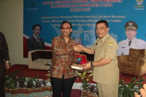 CIREBON – Dalam rangka membuka kegiatan safari gerakan nasional gemar membaca di Provinsi dan Kabupaten/Kota tahun 2017 yang diselengarakan di aula Badan Perpustakaan Kearsipan Daerah (Bapusipda) Kota Cirebon, Wali Kota Cirebon Drs. Nasrudin Azis, SH mengjak kepada masyarakat Kota Cirebon agar terus meningkatkan minat membaca, Senin (15/5).Kegiatan safari gerakan gemar membaca ini mengangkat tema mengenai “Implementasi Renovasi Mental melalui Gerakan Nasional Gemar Membaca dalam Rangka Meningkatkan Indeks Kegemaran Membaca Masyarakat. Diungkapkan oleh Drs. Deni Kurniadi, M.Hum selaku Perwakilan Kepala Perpustakaan Nasional RI mengatakan bahwa Negara Indonesia melalui sejumlah survai yang dilakukan oleh para lembaga menjelaskan bahwa data minat membaca untuk Negara Indonesia berada di posisi ke-60 dari 61 Negara.