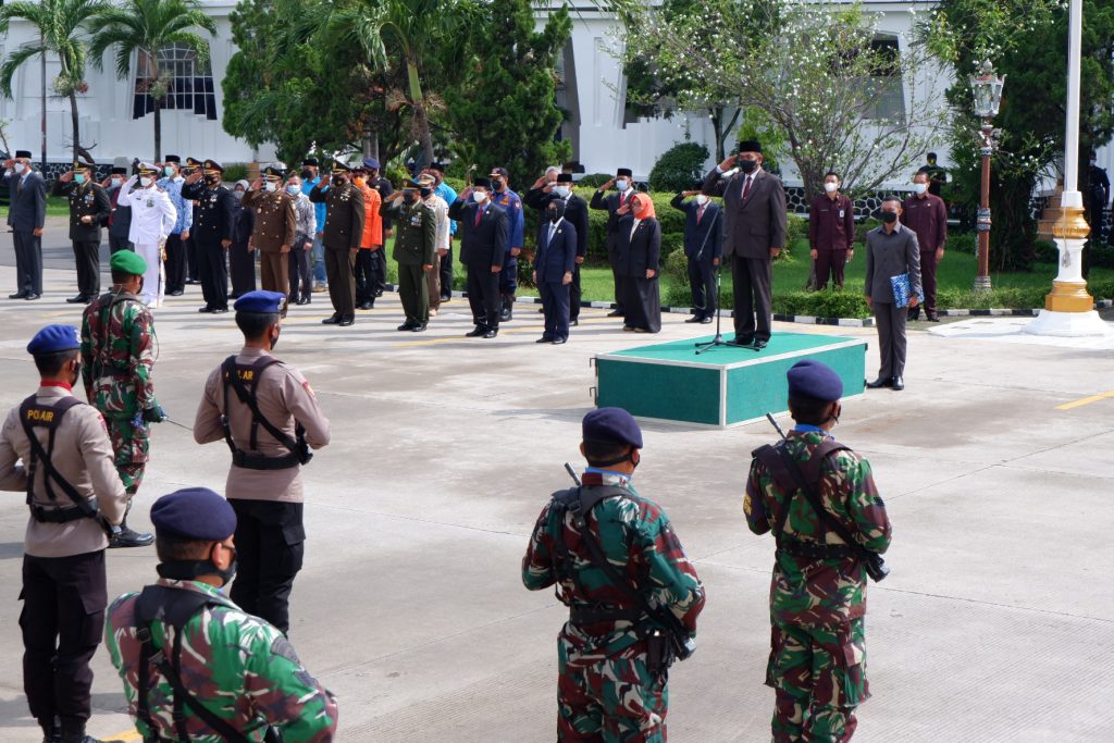 Peringatan Hari Pahlawan 2021 tingkat Kota Cirebon digelar di halaman Balai Kota, Rabu (10/11/2021). Upacara dipimpin langsung oleh Wali Kota Cirebon, Drs. H. Nashrudin Azis, S.H., yang kemudian membacakan amanat Menteri Sosial (Mensos), Tri Rismaharini.