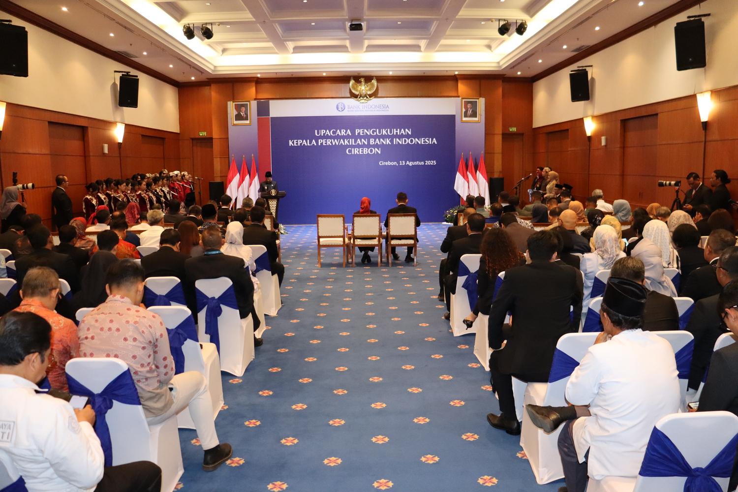 Cirebon – Wali Kota Cirebon, Effendi Edo didampingi Sekretaris Daerah, Agus Mulyadi menghadiri acara Pengukuhan Kepala Perwakilan Bank Indonesia (BI) Cirebon, Rabu (13/8/2025). Serah terima jabatan dilakukan dari pejabat sebelumnya, Anton Pitono, kepada Jajang Hermawan yang akan memimpin Kantor Perwakilan BI Cirebon ke depan.