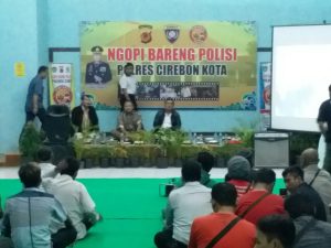CIREBON – Dalam rangka menjaga kondusifitas Kota Cirebon khususnya kesepakatan damai antara angkutan konsvensional dengan angkutan online, Kepolisian Polres Cirebon Kota menggelar kegiatan ngopi bersama, yang turut serta dihadiri oleh Wali Kota Cirebon, Drs. Nasrudin Azis, SH di Aula Kecamatan Kesambi Kota Cirebon, Kamis (19/10)