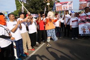 CIREBON – Dalam rangka meningkatkan partisipasi masyarakat dan menyongsong Pilkada serentak di Tahun 2018 mendatang, Komisi Pemilihan Umum (KPU) Daerah Kota Cirebon menggelar kegiatan gerak jalan sadar pemilu tahun 2018 yang dilepas secara resmi oleh Wali Kota Cirebon, Drs. Nasrudin Azis, SH di Depan Kantor Balai Kota Cirebon, Minggu (29/10).