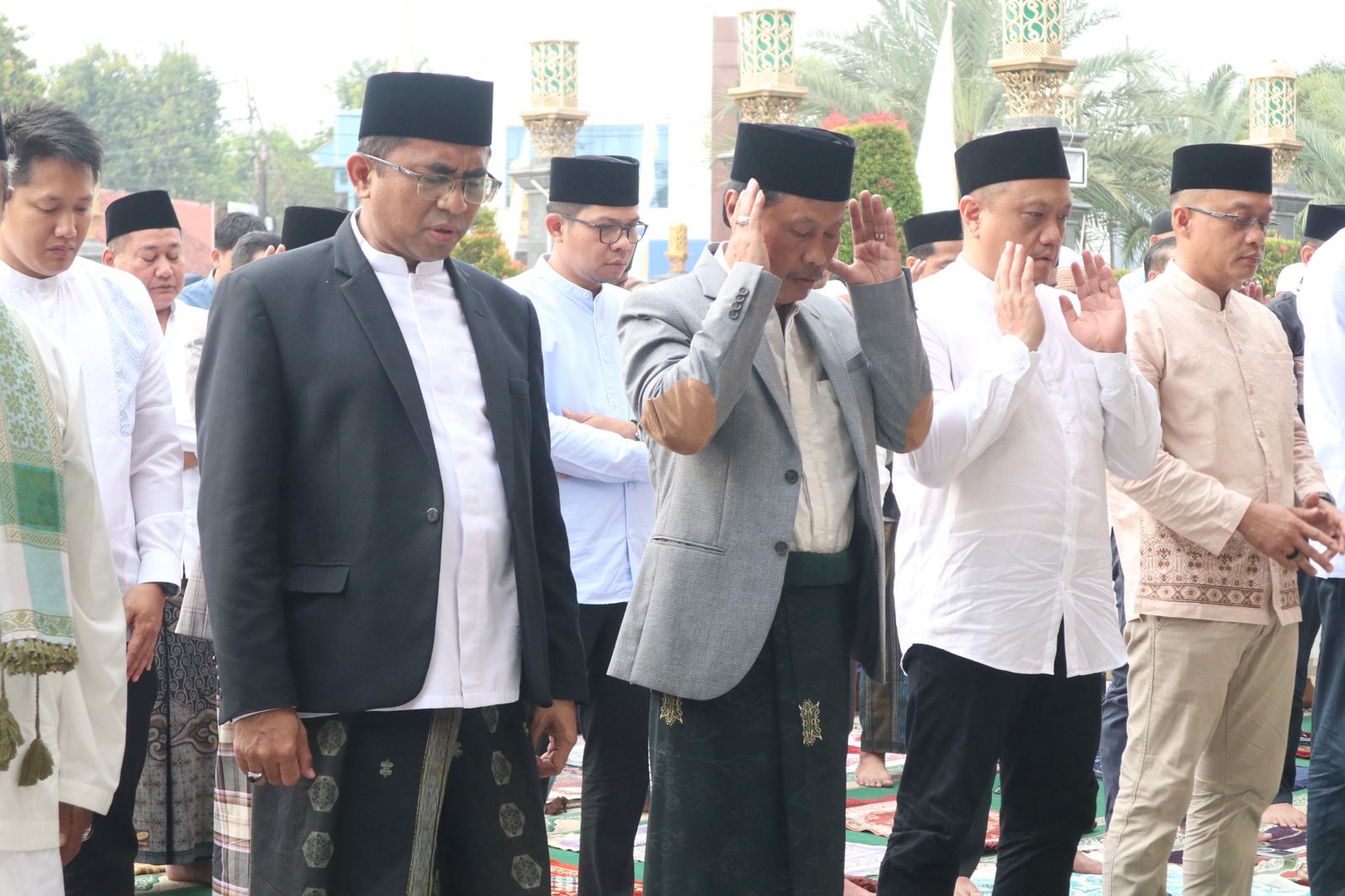 Cirebon – Wali Kota Cirebon, Effendi Edo, bersama Wakil Wali Kota Hj Siti Farida Rosmawati, Sekretaris Daerah H Agus Mulyadi, serta sejumlah pejabat dan kepala perangkat daerah, melaksanakan salat Idulfitri di Masjid At-Taqwa Kota Cirebon, Senin (31/3/2025) pagi.