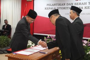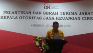 CIREBON—Otoritas Jasa Keuangan (OJK) saat ini menjadi garda terdepan perlindungan keuangan masyarakat dari ancaman penipuan berkedok investasi. Hal itu dikatakan Wali Kota Cirebon, Drs. H. Nashrudin Azis SH saat memberikan sambutan acara pelantikan dan serah terima jabatan Kepala OJK Cirebon, Kamis (23/01/2020).