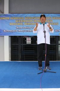 CIREBON – Wali Kota Cirebon, Drs. Nasrudin Azis, SH melakukan pengukuhan Komunitas Peduli Sungai dan Kelompok Masyarakat Anti Narkoba dan HUV AIDS dalam rangka kegiatan Gebyar Lembaga Kemasyarakatan Kelurahan yang diselenggarakan di Halaman Kantor Kecamatan Harjamukti Kota Cirebon, Minggu (3/12).